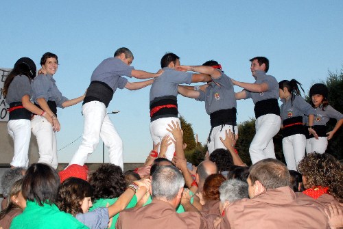 Actuació castellera a Guissona amb la colla local, els Margeners de Guissona, i amb els Moixiganguers d'Igualada