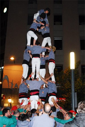 Actuació castellera a la plaça de Sant Domènec en motiu de la Diada dels Tirallongues de Manresa, juntament amb els Castellers del Riberal i els Castellers de Cerdanyola